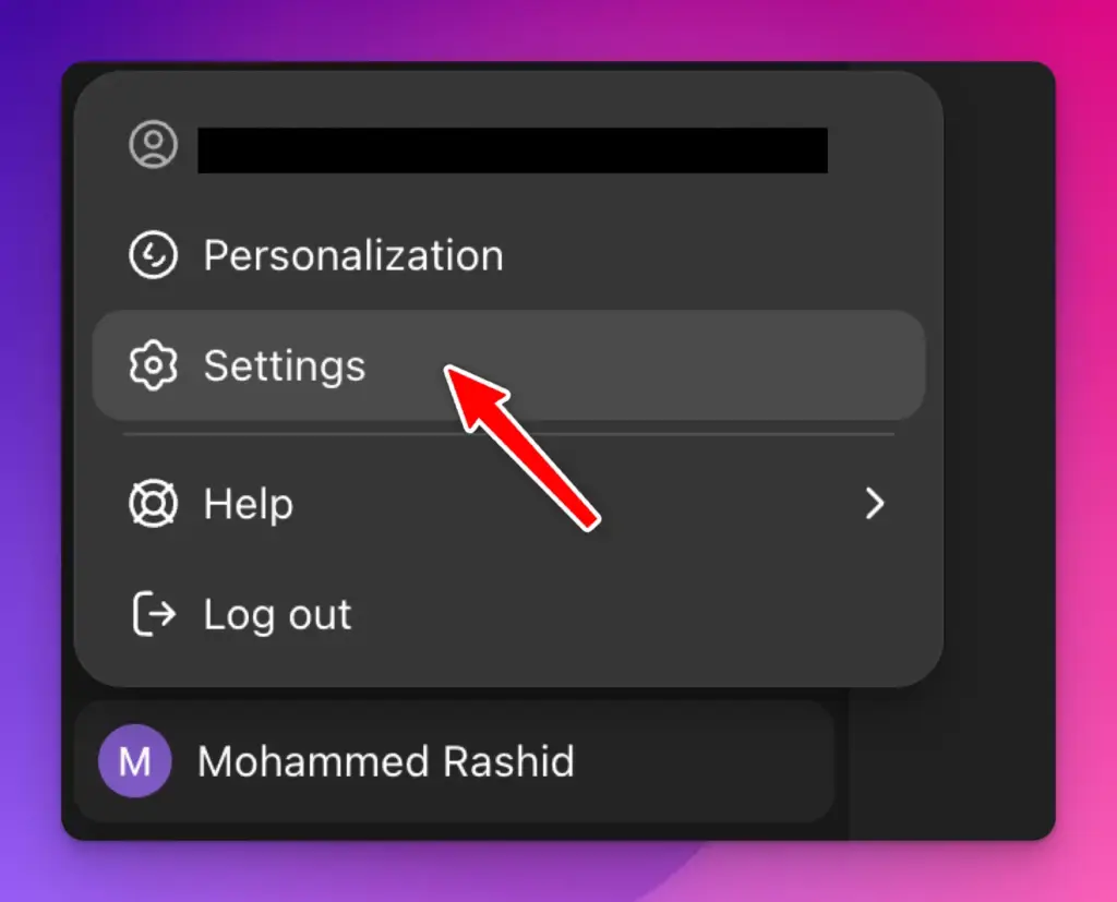 Step 2: Click your profile in the bottom left corner and select Settings.